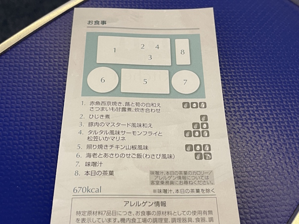 今回はプレミアムクラスだったので、食事もサーブされます。これも楽しみの1つです。